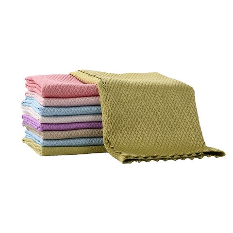 ผ้าไมโครไฟเบอร์เช็ดกระจกสำหรับทำความสะอาดผ้าเกล็ดปลาขัด